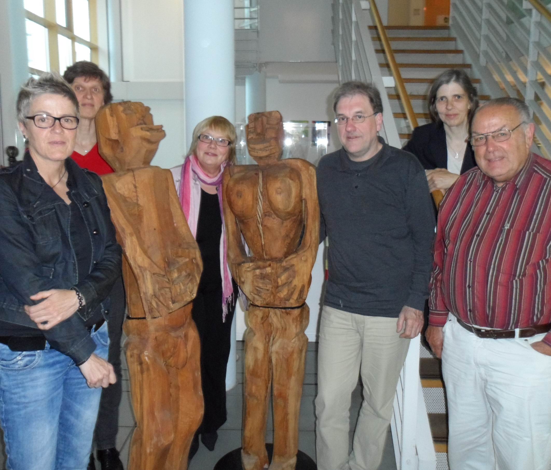 Eine sehr positive Präsentation der Selbsthilfe, das war die einhellige Meinung von Mitgliedern des Sozial-Arbeitskreises der GRÜNEN nach einer Führung durch die vom Fachausschuss Suchtselbsthilfe NRW initiierte Wanderausstellung „Total stark! Kreative Suchtselbsthilfe in NRW“. Die Grünen – Ratsfrau Petra Dieckmann, Harald Wölter und Sylvia Rietenberg – wurden durch die Ausstellung geführt von den Organisatorinnen Ute Freyer, Kunsthistorikerin und Galeristin aus Bocholt, und Lore Theis, Projektleitung und Vorstandsmitglied der unterstützenden Karl Heinz und Hannelore Bösken-Diebels-Stiftung, sowie dem Vorsitzenden des Landesverbandes des Blauen Kreuzes in der Ev. Kirche Karl-Hermann Vagt.