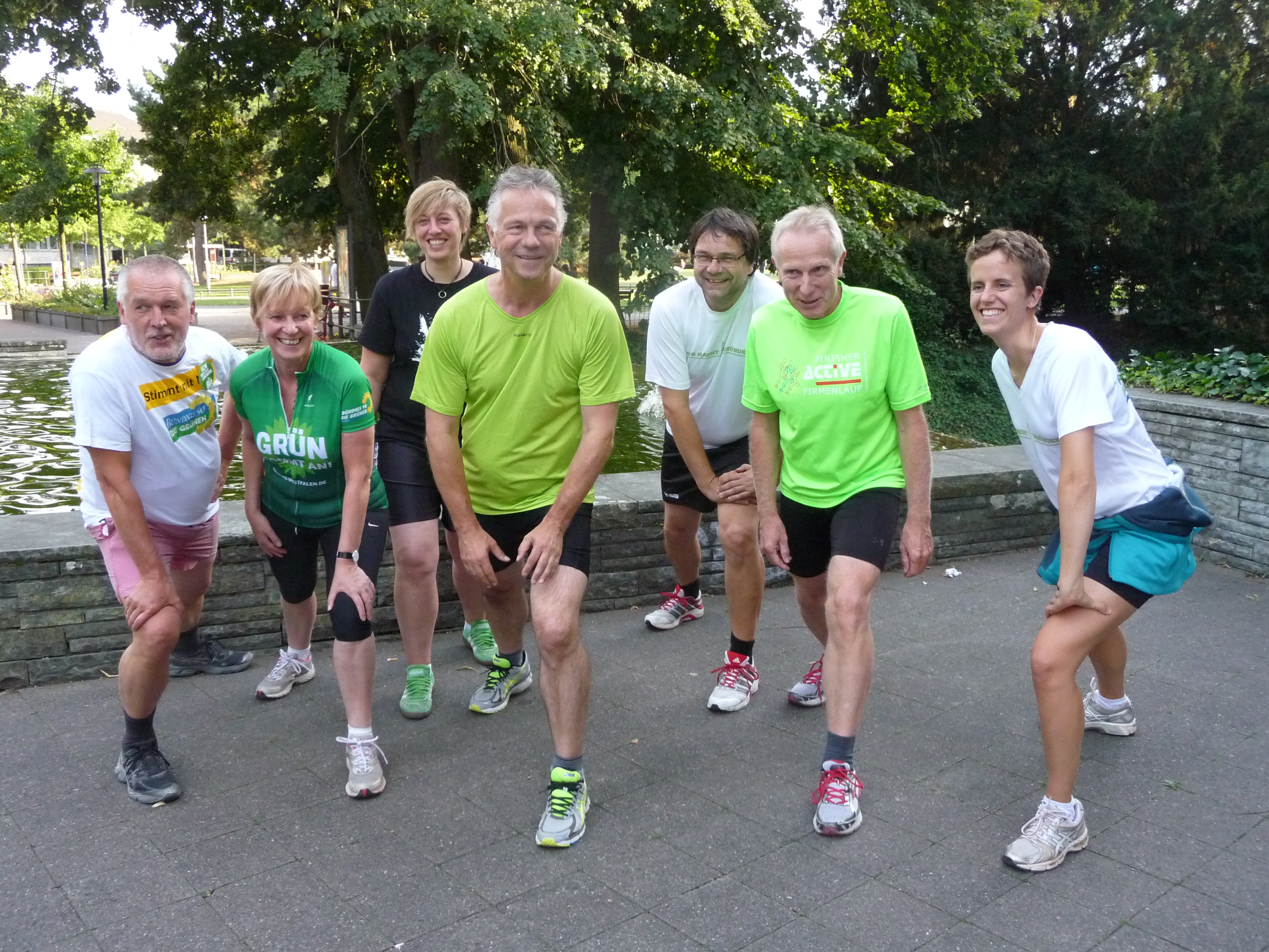 Die Staffeln von Bündnis 90/ Die Grünen-Gal Münster haben beim Münster-Marathon eine lange Tradition. Schon seit vielen Jahren suchen die Grünen in ihren eigenen Reihen nach LäuferInnen, die Spaß an der gemeinsamen Bewegung haben. Rekordverdächtige sieben Staffeln schicken die Grünen dieses Jahr an den Start. Um für das Event in der Münsteraner Innenstadt fit zu sein, veranstalten die Grünen auch in diesem Jahr wieder gemeinsame Trainingsläufe.