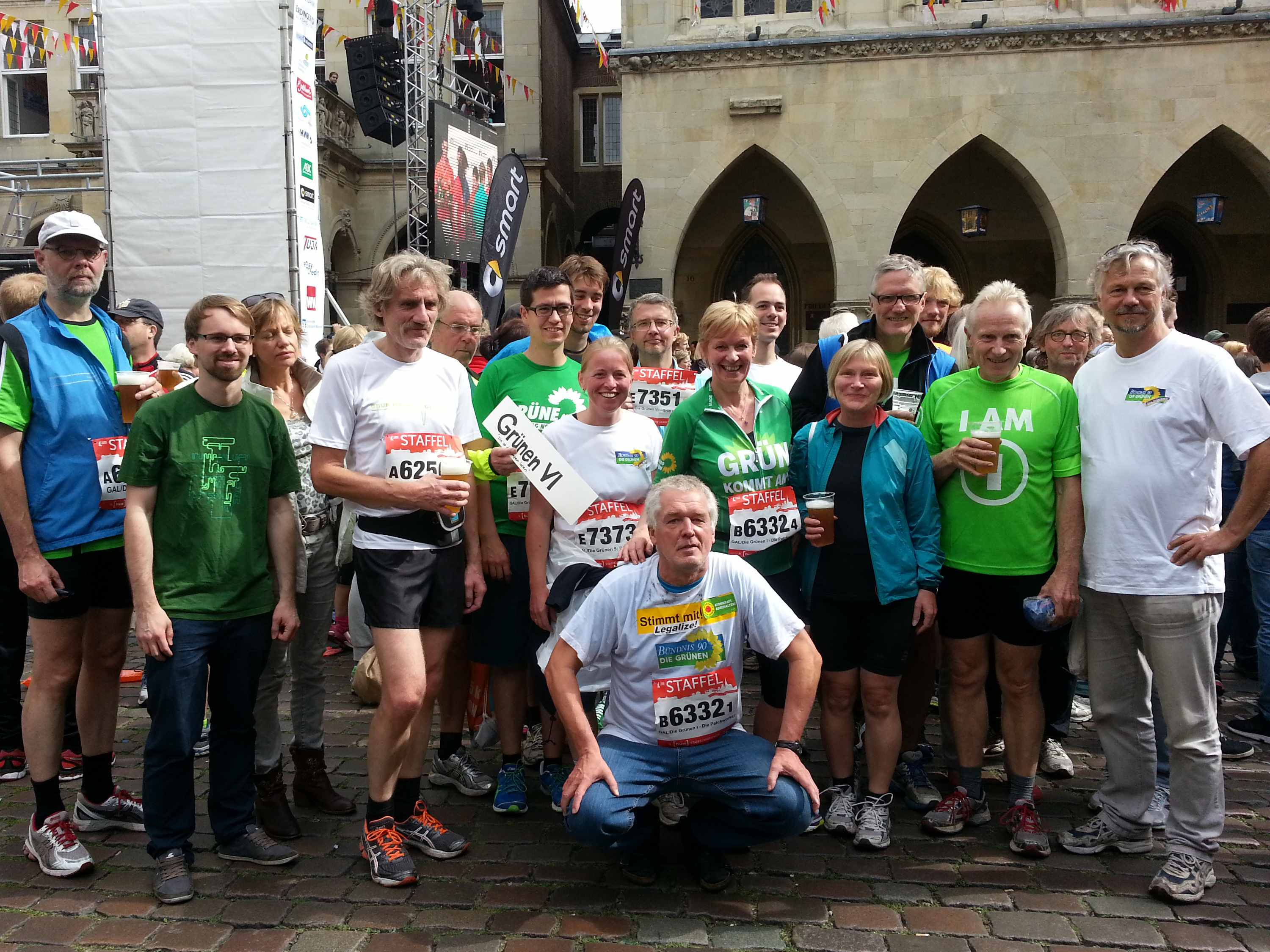 Gleich mit 9 Teams haben die Grünen Münsters (ein neuer Rekord) ihre politischen Ziele von Vielfalt und Gemeinsinn mit viel Spass und Freude auf die Marathonstrecke gebracht. Wie immer bunt