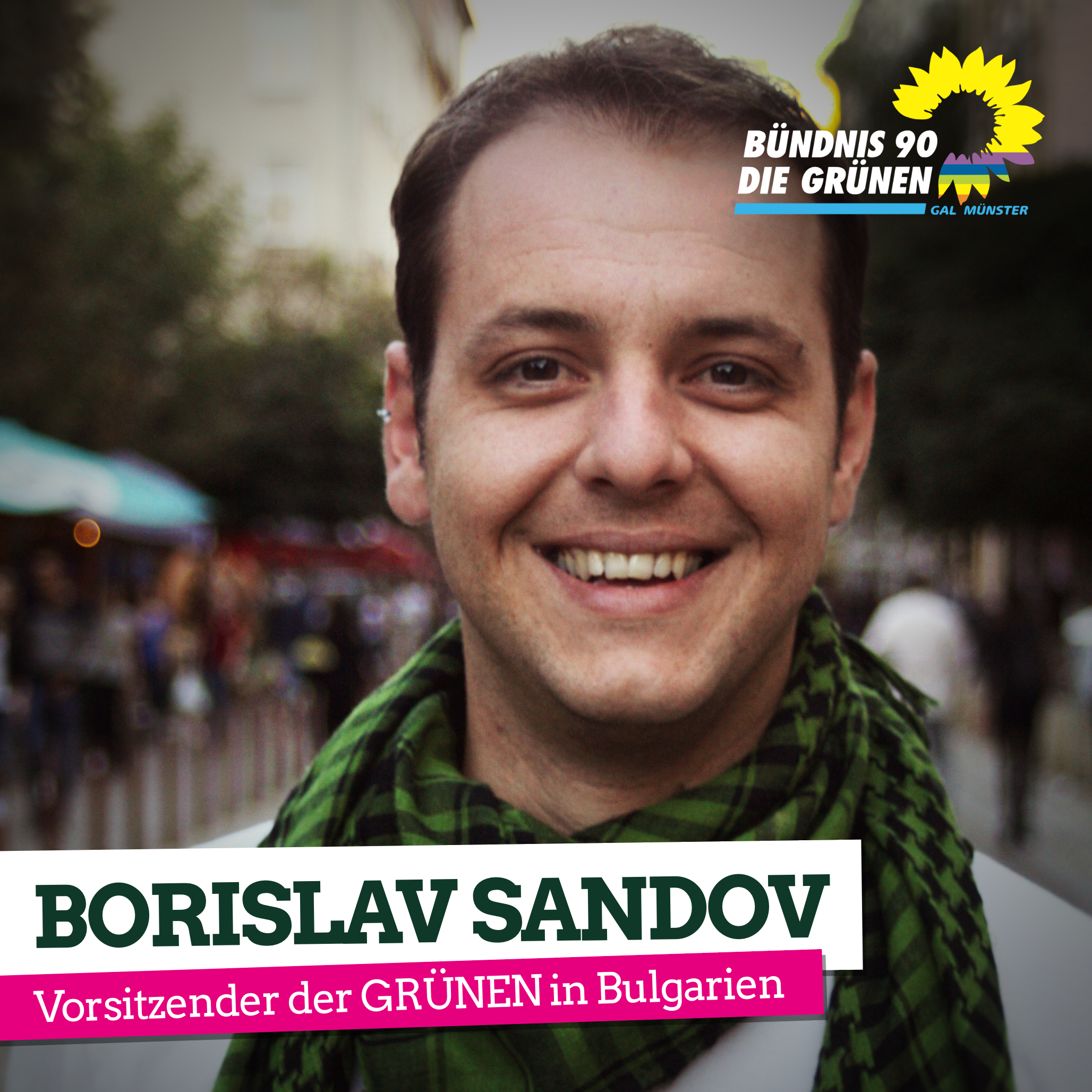 DIE GRÜNEN Münster laden zu einem Vortrag des Vorsitzenden der GRÜNEN in Bulgarien am Sonntag, dem 06. Mai ab 16:00 Uhr, ins Grüne Zentrum (Windthorststraße 7) ein.