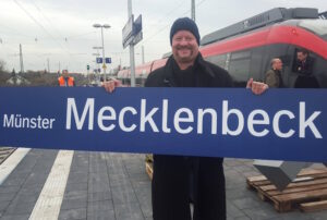 „Die Reaktivierung des Bahnhaltepunkts in Mecklenbeck ist ein wichtiger Baustein zur Stärkung des ÖPNV in Münster wie auch der Region. Wenn ab Sonntag nach 27 Jahren wieder Züge in Mecklenbeck halten, werden mehr PKW-Fahrer*innen auf die Bahn umsteigen“, hofft GAL-Ratsherr Carsten Peters, verkehrspolitischer Sprecher unserer Fraktion. Wichtig sei, dass mit der Haltestation Mecklenbeck auch der Ausbau der Baumbergebahn abgeschlossen ist. „Halbstündlich halten nun die Züge der RB 63 in Mecklenbeck und Roxel“, begrüßt Peters anlässlich der feierlichen Inbetriebnahme des Bahnhofs diese Verbesserung und verweist auf einen gemeinsamen Antrag von GRÜNEN und CDU, der die Reaktivierung und Neuinbetriebnahme von weiteren Bahnhaltepunkten in Münster zum Inhalt hat.