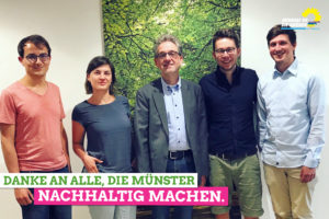 Anlässlich der Verleihung des Deutschen Nachhaltigkeitspreises an die Stadt Münster, zeigt sich der GRÜNE Kreisverband Münster zufrieden, sieht aber auch weiteren Handlungsbedarf. Die Auszeichnung wird u.a. mit dem Klimaschutz-Engagement der Stadt, sowie der von den GRÜNEN maßgeblich vorangetriebenen sozialgerechten Wohnungspolitik begründet.