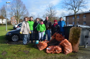 Altpapier, Bauschutt, Verpackungsmüll und Sperrgut: Bei ihrer neuen Müllsammelaktion am vergangenen Sonntag, den 11. Februar 2018, sammelte die Ortsgruppe der GRÜNEN Hiltrup erneut Abfall rund um die Sportanlage Hiltrup-Süd und den Oedingteich.
