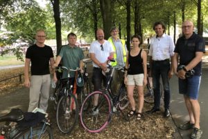 v. l. n. r.: Hans-Günter Ockenfels (ADFC), Elmar Post (ADFC), Carsten Peters (GRÜNE), Matthias Wüstefeld (ADFC), Annika Bürger (GRÜNE), Otto Reiners (GRÜNE), Herbert Spahn (ADFC OG Telgte-Ostbevern)