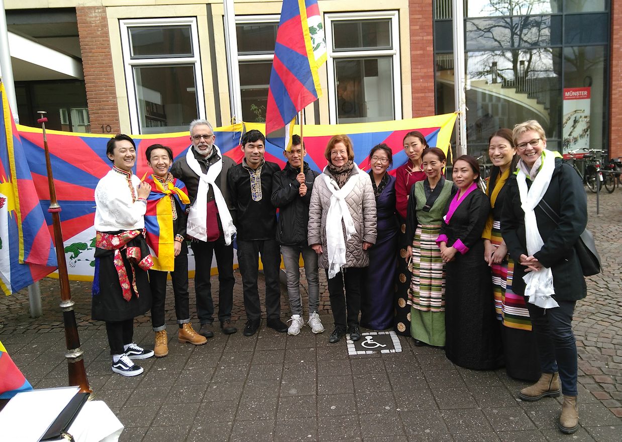 Am Samstag besuchte die Grüne Bundestagsabgeordnete Maria Klein-Schmeink die Flaggenaktion der Münsteraner Tibet-Initiative vor dem Stadthaus I zusammen mit Bürgermeisterin Wendela-Beate Vilhjalmsson. Viele Tibeterinnen und Tibeter waren gekommen und sangen ihre Nationalhymne, was in ihrer Heimat verboten ist. „Flagge zeigen für Tibet!“ ist eine Kampagne der Tibet Initiative Deutschland, die seit 1996 am 10. März, am internationalen Aktionstag für Tibet stattfindet. „Auch in Münster setzen wir somit ein Zeichen der Solidarität mit dem tibetischen Volk, das seit 1949/50 von China unterdrückt wird“, so Maria Klein-Schmeink, die selbst Mitglied der deutsch-tibetischen Parlamentariergruppe ist.