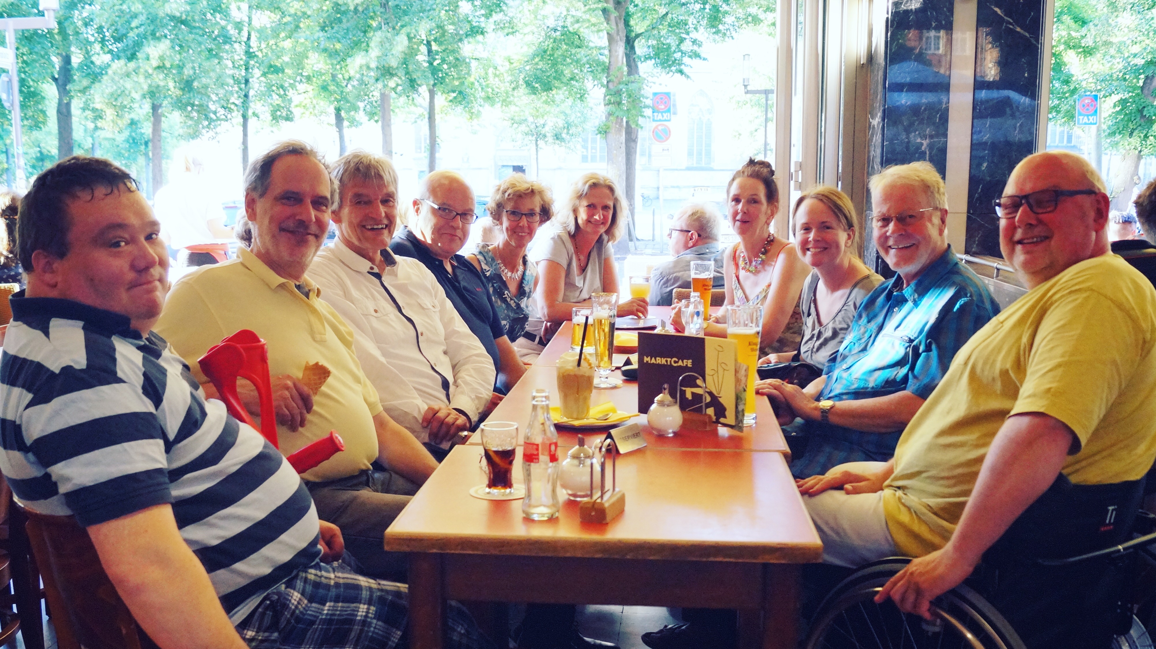 Im Anschluss der Führung finden sich gut 25 Menschen zum lockeren Beisammensein im Marktkaffee zusammen und nutzen die Chance mit Winfried Nachtwei und Dr. Hannah Neumann das Gespräch und den Austausch zu vertiefen. Es wird spät, aber alle Teilnehmer*innen nehmen besondere Eindrücke mit nach Hause.