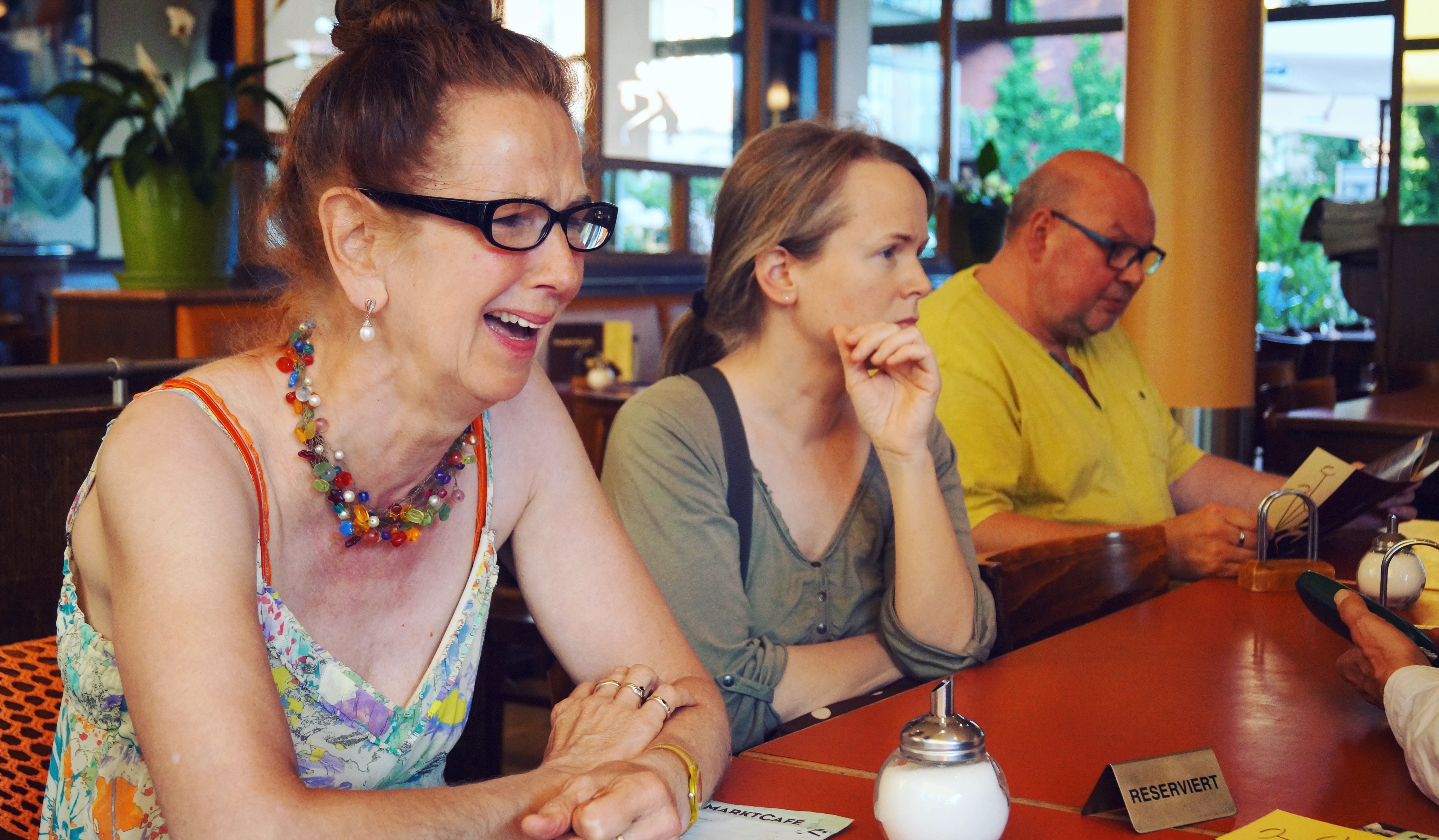Fast nebenbei fällt die Bemerkung, dass man als Mutter dreier Kinder, welche langsam ins Alter der Pubertät kämen, auch als Konfliktforscherin nicht sorgenfrei bezüglich des eigenen „Familienfriedens“ sei. Die Besucher*innen sind amüsiert, das Eis ist gebrochen.