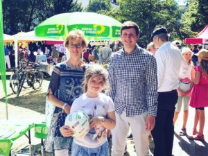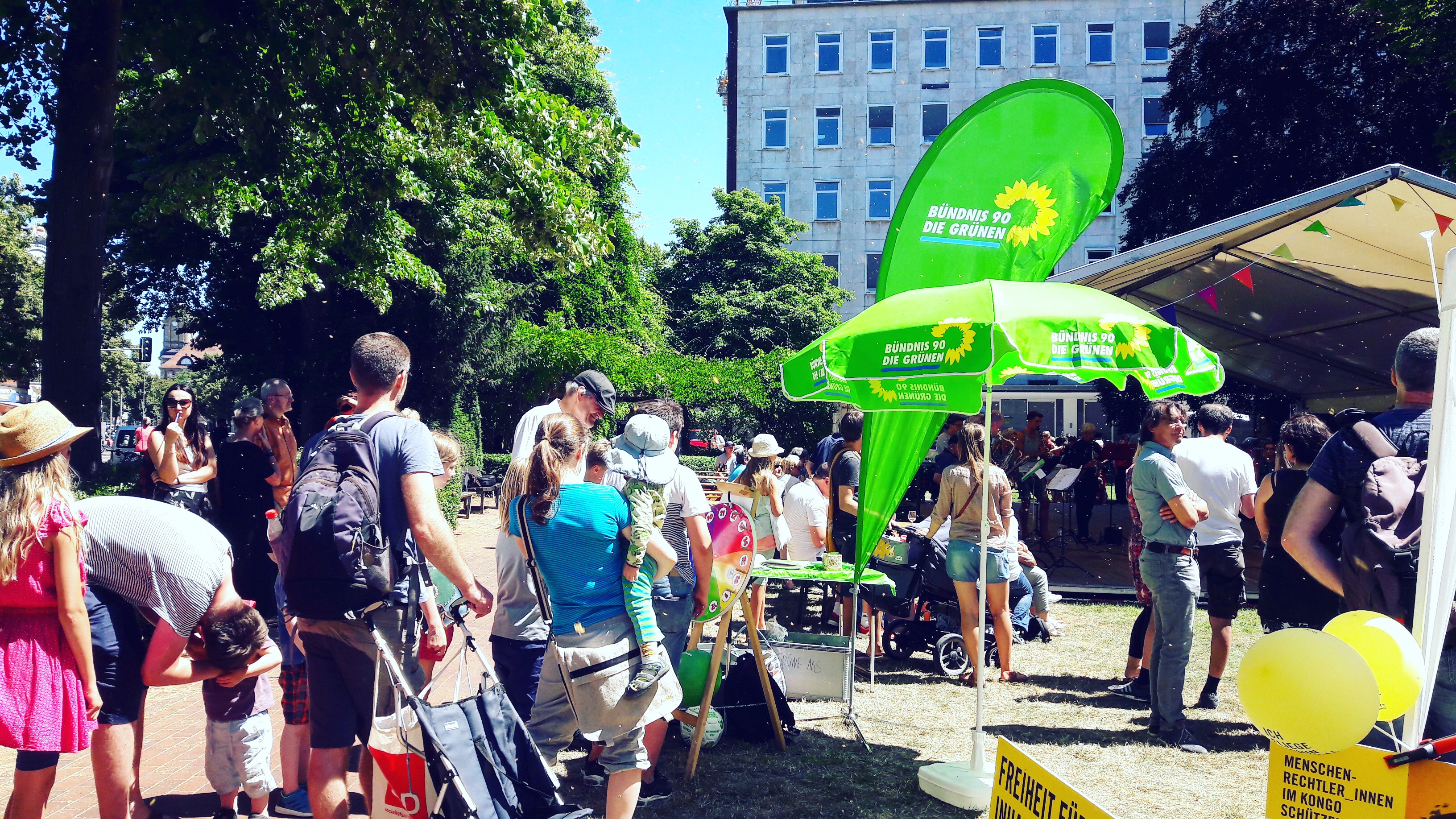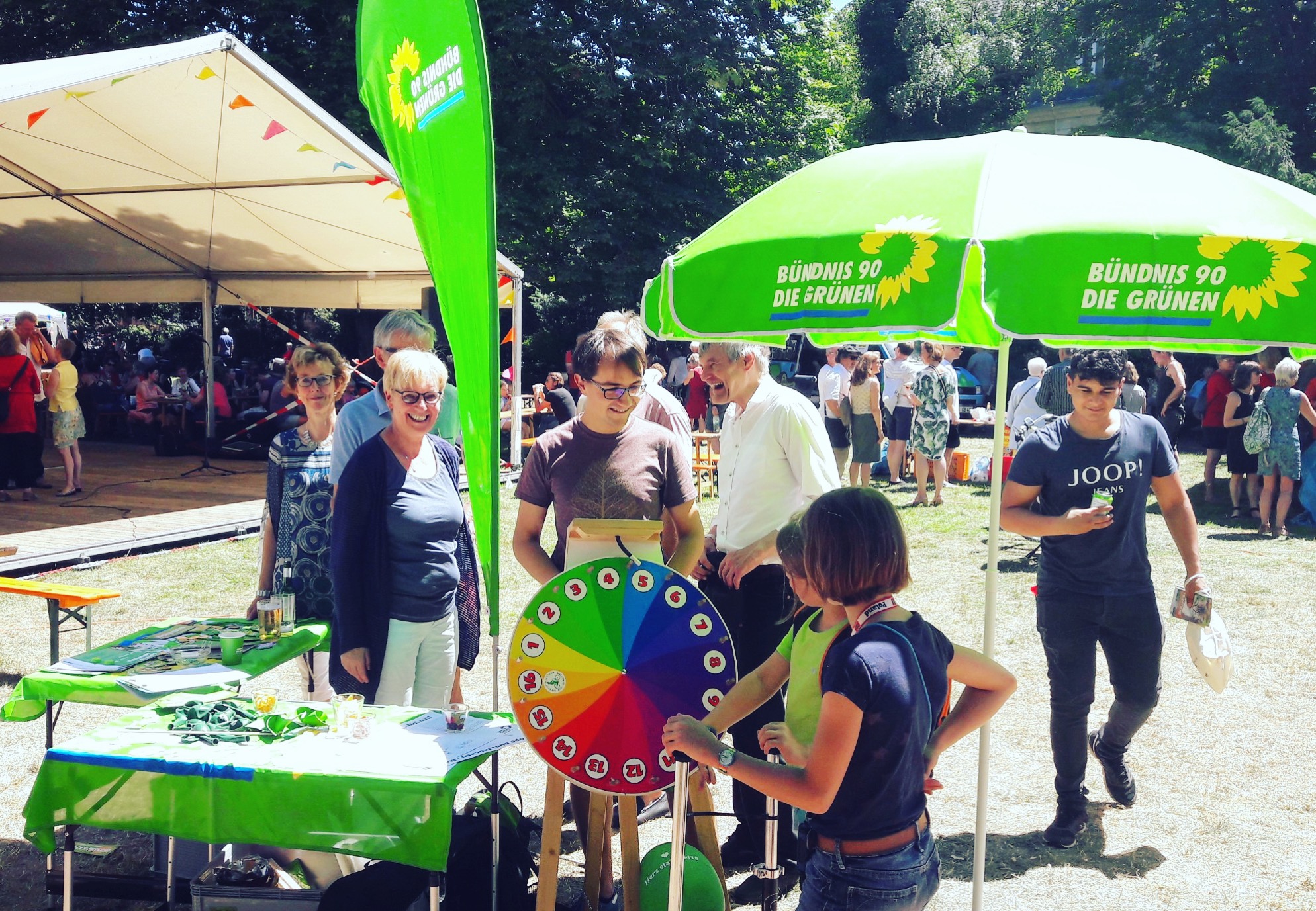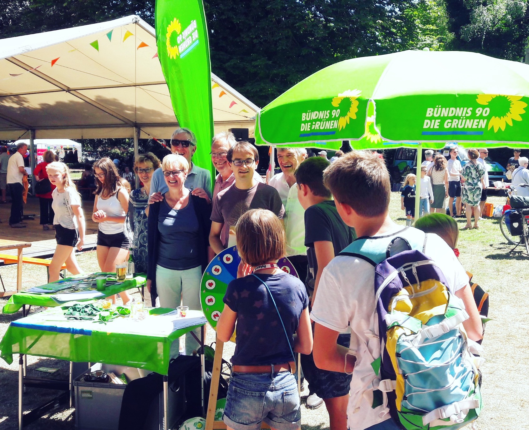 Auch in diesem Jahr waren Bündnis 90/Die GRÜNEN/GAL Münster wieder beim 4tel-Fest in Mauritz West dabei. Bei tollem Wetter und guter Laune wurden vor allem die jüngeren Gäste dazu eingeladen, am GRÜNEN Glücksrad zu drehen. Peter Umlauf erklärte die Spielregeln: Drei Versuche, die Teilnehmer*in mit den meisten Punkten gewinnt am Ende den Fußball. Doch selbst wer nicht den Hauptgewinn abräumte, stand nicht mit leeren Händen da. Windräder, Luftballons, vegane Gummibärchen, Schlüsselanhänger, Malbücher zählten zu den Preisen.