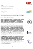 Ein gemeinsames Schreiben „Aufnahme von besonders schutzbedürftigen Flüchtlingen“ von Stefan Weber (Vorsitzender der CDU-Ratsfraktion), Otto Reiners (Fraktionssprecher Bündnis 90/DIE GRÜNEN/GAL), Karl-Heinz Neubert (Stadt der Zuflucht), Jörg Hagemann (Stadtdechant von Münster) und Ulf Schlien (Superintendent Ev. Kirchenkreis Münster) an den Münsteraner Oberbürgermeister Markus Lewe.