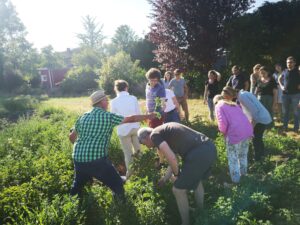 ökologischen Landwirtschaft. Josef Freitag, Landwirt mit Herzblut, gewährte im Rahmen einer Hofführung Einblicke zum Beispiel zum Umgang mit Unkraut, zur Düngung und zur artgerechten Haltung von Hühnern. Im Fokus stand dabei das sehr moderne „Cut & Carry“-Verfahren, bei dem Rotklee auf einem Feld angebaut wird und nach dem Schnitt als Dünger auf ein anderes Feld ausgetragen wird. „Die Methode fördert nützliche Oragnismen im Erdreich wie beispielsweise Regenwürmer und ermöglicht zudem eine innovative Kreislaufwirtschaft auf einem Hof“, berichtet Evelyn Alex, Sprecherin der AG, von ihren Erkenntnissen.