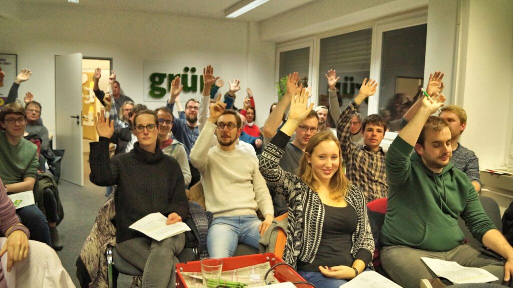 Auch für Veranstaltungen außerhalb des Wahlkampfes beschloss die Kreismitgliederversammlung eine Erhöhung des sog. Aktions-Etats. „Um dem neuen Gewicht der Partei auch auf Bundesebene Rechnung zu tragen, muss die Partei in der Öffentlichkeit gut sichtbar sein“, fordert Anne Herbermann, Sprecherin der Arbeitsgemeinschaft Europa, Frieden, Internationales. Mit breiter Mehrheit wurde nach lebendiger Diskussion die Erhöhung des Etats um weitere 7.000 Euro auf 17.000 € beschlossen. Bei den anschließenden Wahlen wurden Maria Leeuw, Anne Herbermann und Niklas Haarbusch als Delegierte zum Landesparteirat (Kleiner Parteitag) gewählt und werden Münsteraner Interessen auf Landesebene vertreten. Hier in Münster starten die Grünen am Samstag, 13.04. in den Straßenwahlkampf zur Europawahl.
