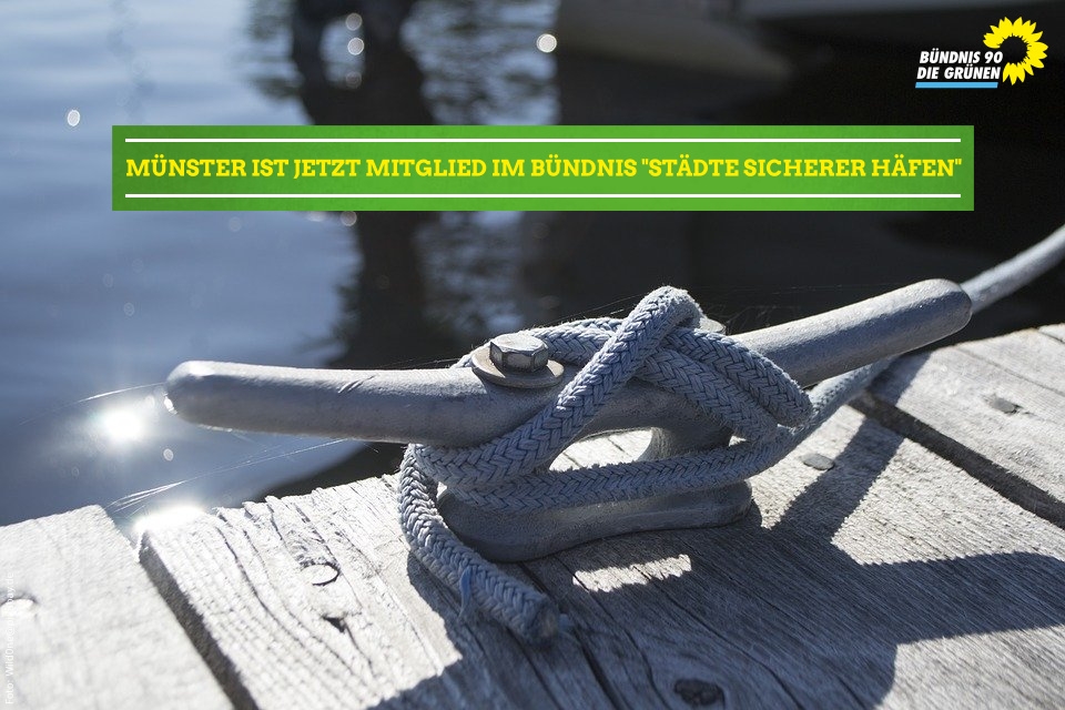 Man sieht eine Tau, dass an einem Anlegesteg festgemacht ist„Ich freue mich, die Stadt Münster als Mitglied im Bündnis „Städte Sicherer Häfen“ begrüßen zu können“, beginnt das Schreiben des Potsdamer Oberbürgermeisters Mike Schubert an seinen Münsteraner OB-Kollegen Markus Lewe, in dem er auch auf das Ergebnis des ersten Bündnis-Arbeitstreffens hinweist. Unter Verweis darauf unterstreichen GAL-Fraktionssprecher Otto Reiners und GAL-Ratsherr Christoph Kattentidt ihre Hoffnung, dass von dem dort bekräftigten Angebot zur zusätzlichen Aufnahme von Menschen aus humanitären Notlagen im Mittelmeerraum auch  tatsächlich bald Gebrauch gemacht wird.