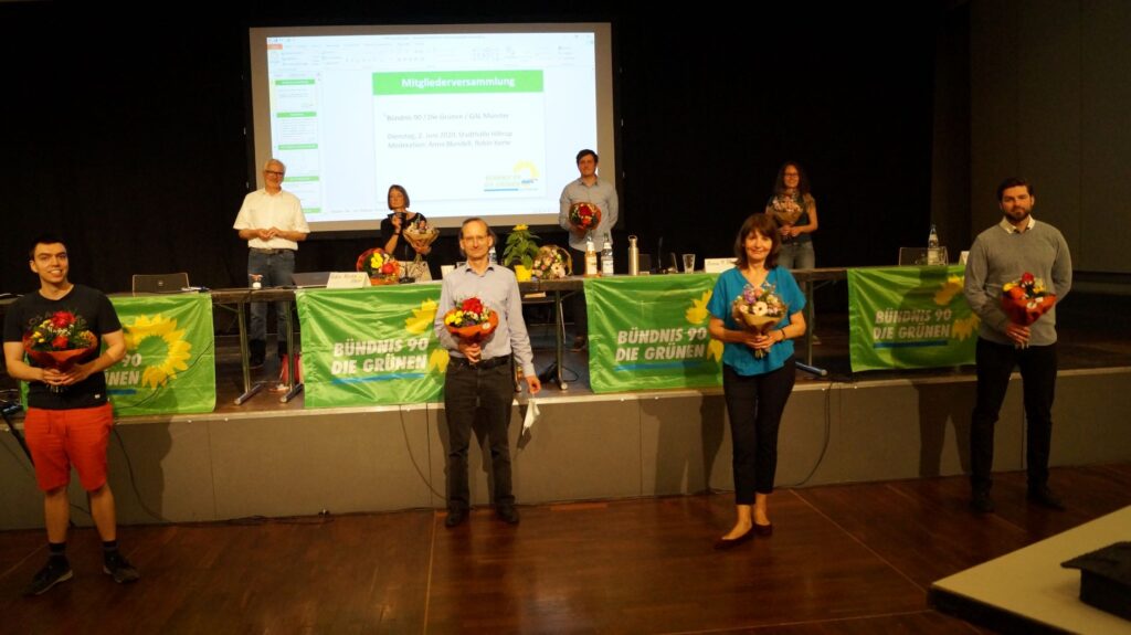 “Wir haben unsere Mitgliederzahl verdoppelt, uns deutlich professionalisiert und bei der Europawahl 36 Prozent erreicht.“ Die Erfolge des bisherigen Vorstandes können sich sehen lassen, so der grüne Oberbürgermeister-Kandidat Peter Todeskino bei der Mitgliederversammlung des grünen Kreisverbandes Münster am Dienstag. Trotz Corona und Sommerwetter waren 100 Mitglieder in die Stadthalle Hiltrup gekommen. „Das zeigt, wie engagiert unsere Mitglieder sind“, so Todeskino. „Mit ihnen werden wir es schaffen, unseren Erfolg fortzusetzen und stärkste Kraft bei der Kommunalwahl zu werden.”