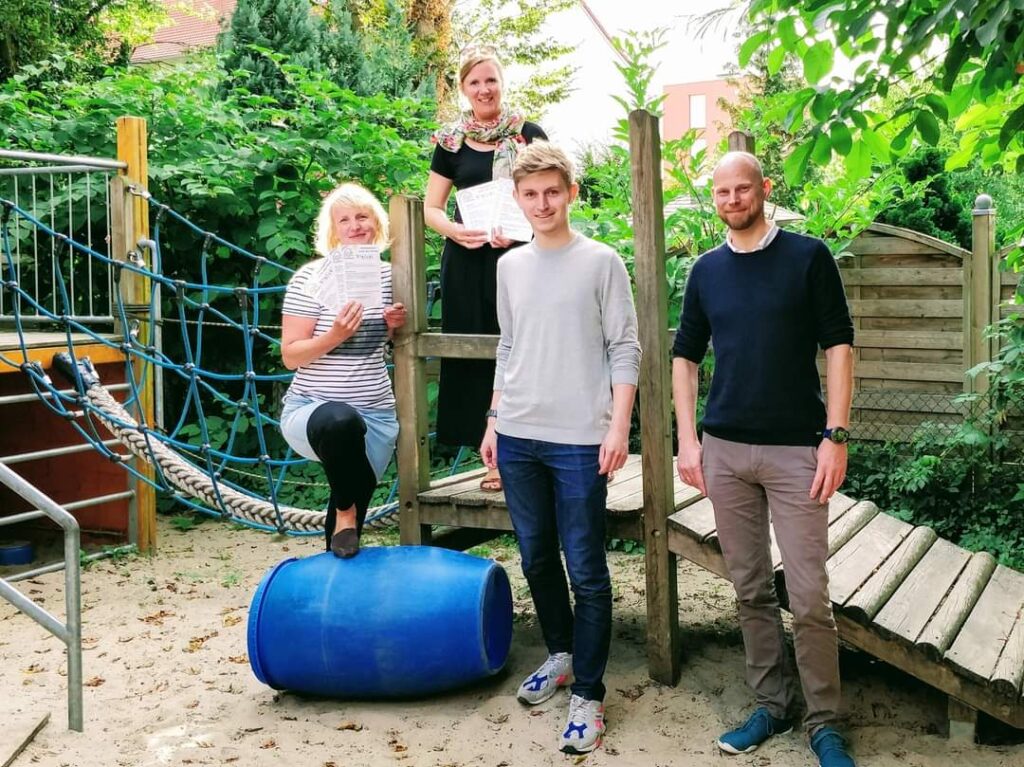 Foto: v.l.n.r. Ulrike Häupl (Regenbogenkinder), Frau Beierle-Kaschuba (Regenbogenkinder), Leon Herbstmann, Christian Hinsch (Regenbogenkinder)