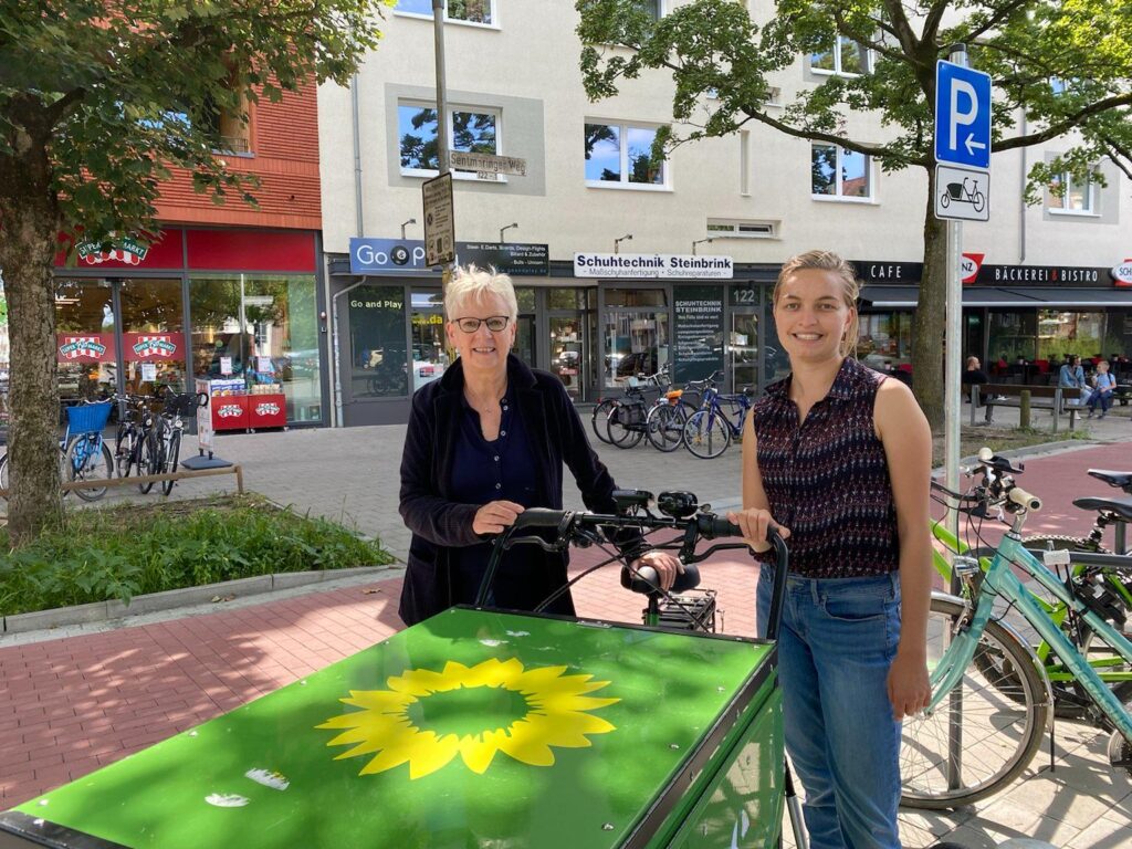 Vor diesem Hintergrund erläutert Maria Klein-Schmeink, GRÜNE Bundestagskandidatin die Grüne Forderung nach einem Förderprogramm des Bundes für private und gewerbliche Lastenräder: