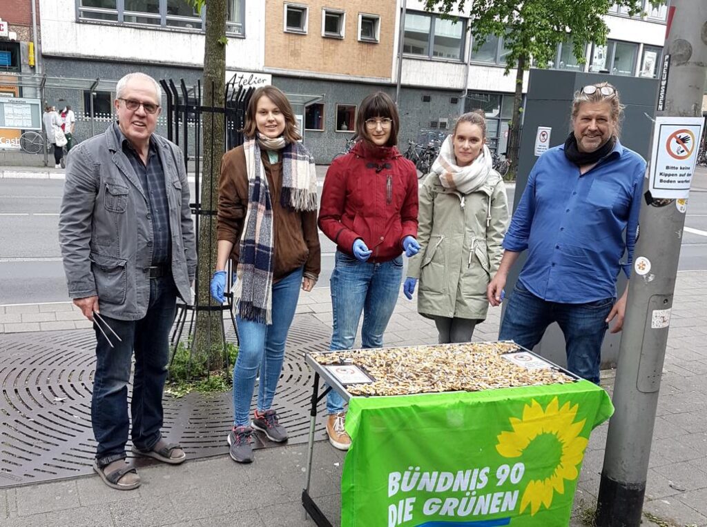 Unsere Arbeitsgemeinschaft „Ökologie, Nachhaltigkeit und Wirtschaft“ hat am Bült ganze Arbeit geleistet. In einer „Kippensammelaktion“ hat sie auf die unnötige (Umwelt-)Verschmutzung durch fallen gelassene Zigarettenstummel aufmerksam gemacht. Angestoßen wurde das Projekt durch Gregor Frye (links), der selbst am Bült wohnt und sich an einem Wahlkampfstand der GRÜNEN über die Problematik beschwerte.