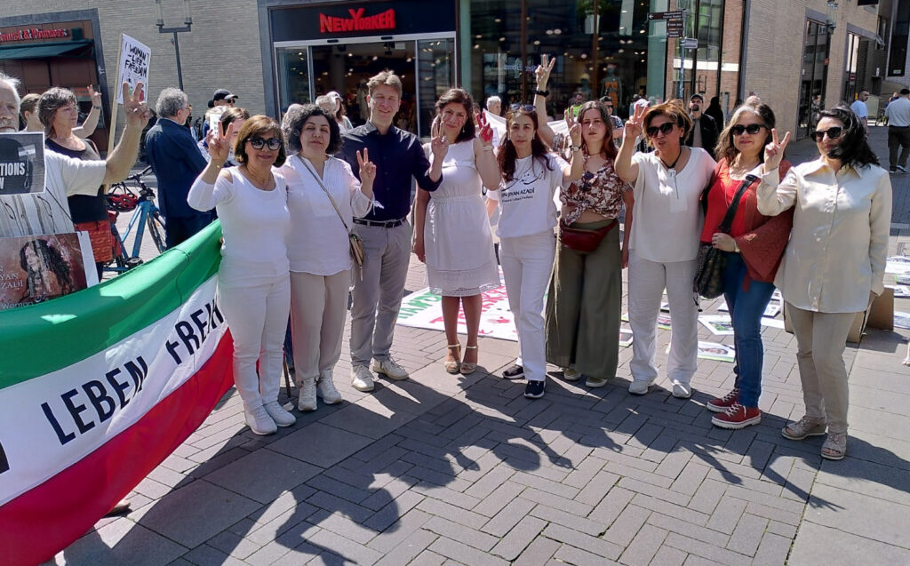 Die Protestierenden, viele davon Iraner*innen im Exil, protestieren jeden Samstag auf dem Stubengassenplatz in Münster ab 14:00 Uhr gegen das Mullahregime.
