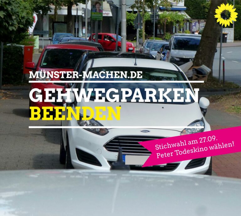 „Freie Gehwege sind insbesondere für ältere und mobilitätsbeeinträchtigte Menschen ebenso unverzichtbar, wie für Kinder“, unterstreicht Oberbürgermeister-Kandidat Peter Todeskino. Es könne nicht sein, dass etwa im Kreuzviertel oder an der Hüfferstraße…