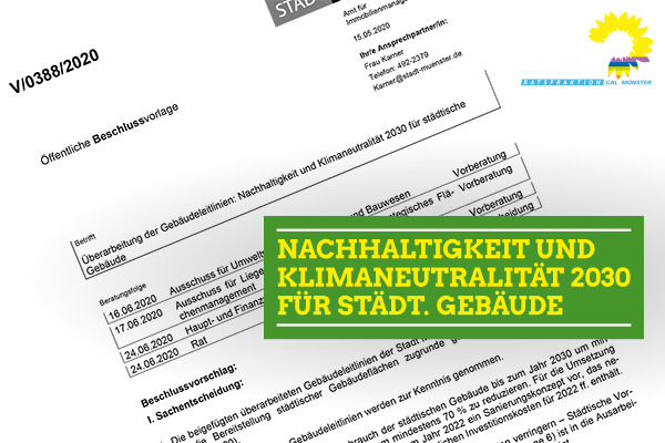„Wenn Münster bis 2030 klimaneutral werden will, dann muss das auch für die mehr als 1.000 städtischen Gebäude gelten“, betont Dr. Robin Korte, sachkundiger Bürger für die Grünen im Umweltausschuss.…